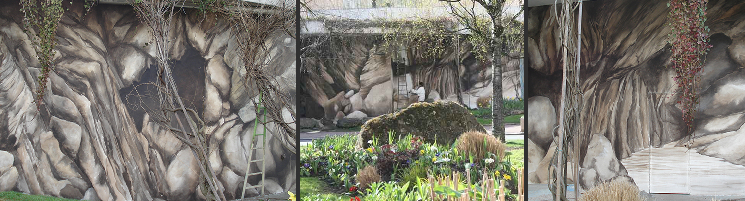 Trompe l'oeil : Peinture d'une grotte sur les murs de la commune de Gagny (93)
